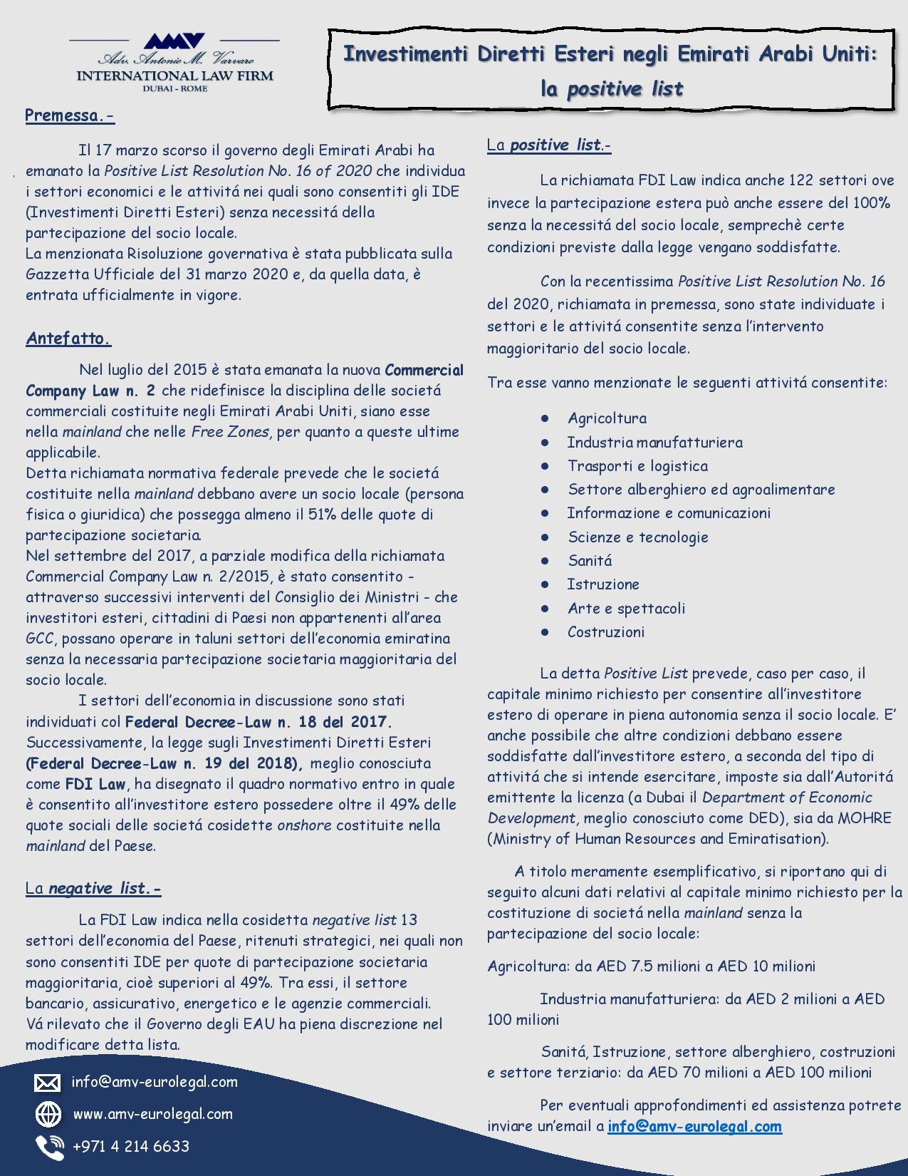 Lo studio figura anche nelle liste del Consolato Generale d'Italia a Dubai, dell'ICE-Agenzia (Uffici di Dubai) ed è consulente legale della Camera di Commercio italiana negli EAU.