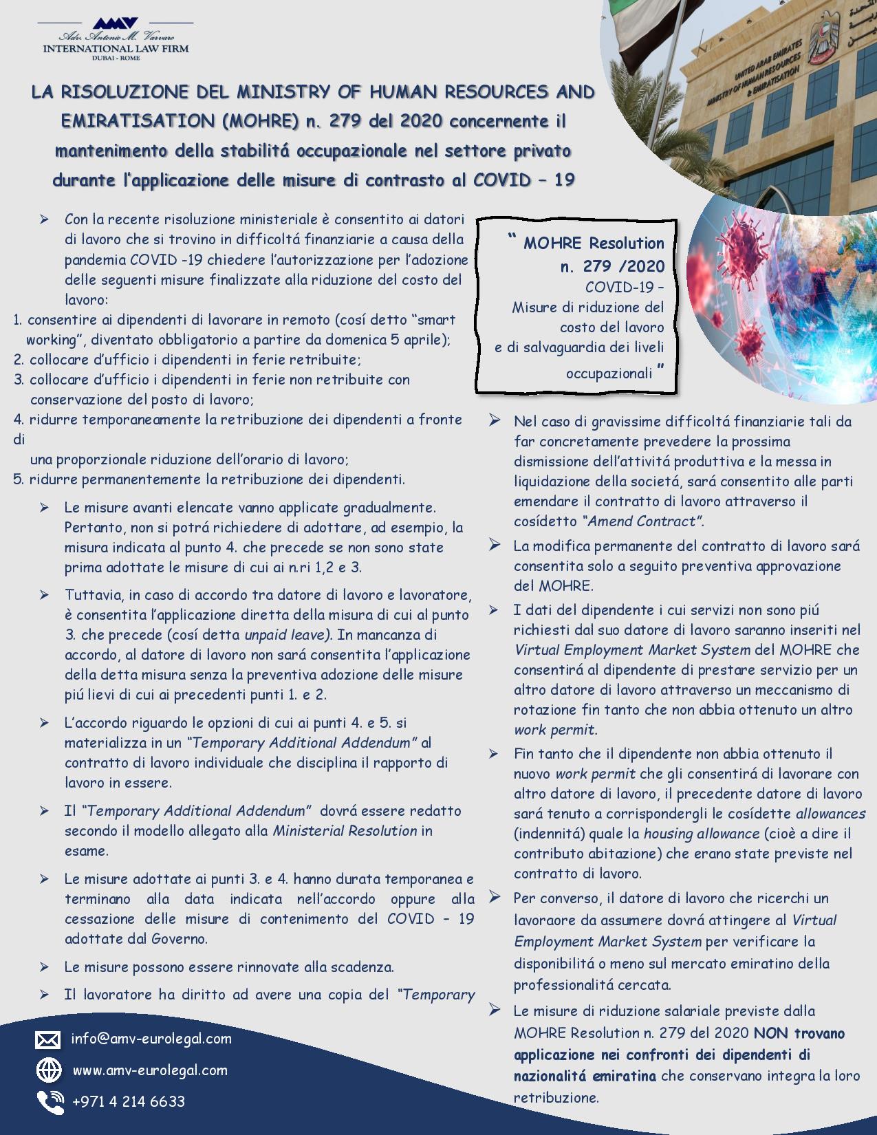 (che ha abrogato la Labor Law n. 8 del 1980) è la fonte che regola la gran parte dei contratti di lavoro implementata dalle Circolari e Risoluzioni del Ministero delle Risorse Umane e dell’Emiratizzazione (MOHRE).